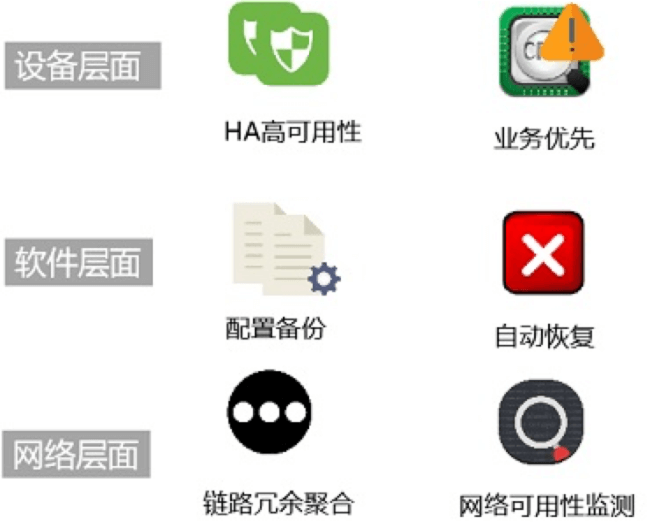 2)核心设备、汇聚设备全采用双机部署,其链路均采用双链路架构。